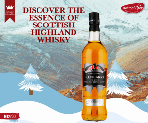 De Glengarry Higland Single Malt komt uit Schotland en heeft een alcoholpercentage van 40%. Hij kleurt mooi amber en wanneer je de fles opent ruik je mout, gerst en boomgaardfruit. De smaak is goed in balans en na even slaat deze dan door naar zoetig graan, peer en vanille gecombineerd met zachte citrustonen.